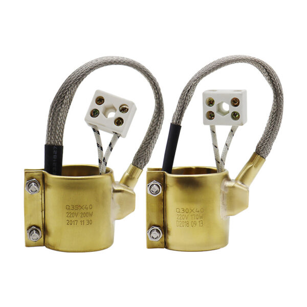 Product Description These rugged heaters are designed for injection moulding and plastic extruders as well as other similar types of machinery. They are made from brass and have a smooth contact area without voids which gives them excellent thermal exchange. The flexible leads which are resistant to being pulled off leave the heater at a